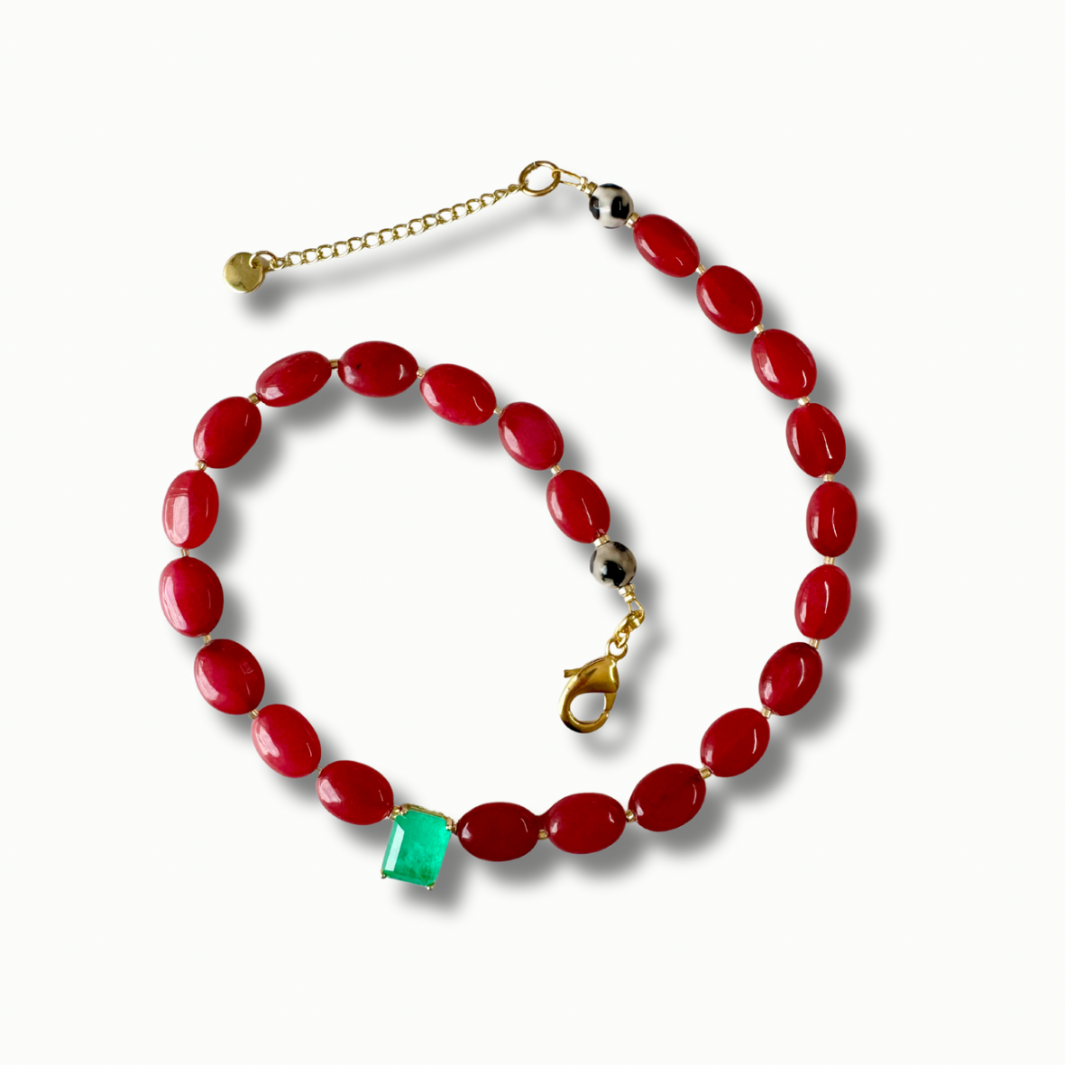 Es un collar demasiado especial, cuentas de jade con dije de muralla de esmeralda. Lo vas a amar ✨